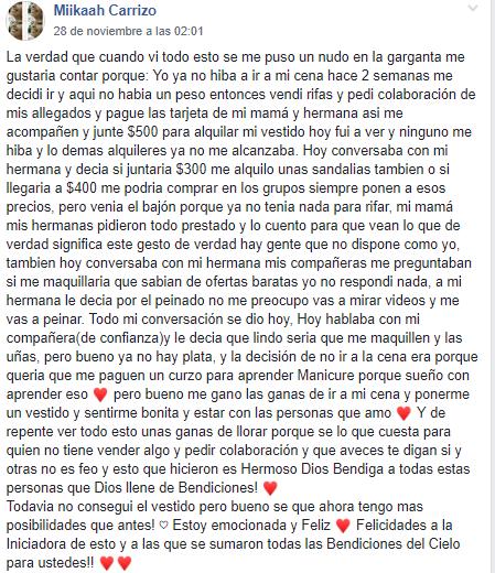La iniciativa es a nivel nacional y se extiende a toda la región. “Hola chicas, yo también me sumo a prestar mi vestido de fiesta de egresada. Estamos en tiempos difíciles y el mío está a disposición de la chica que lo necesite”, publicó en Facebook Karen de Senillosa. Por su parte, Lucía de Roca publicó que “si conocen a alguien que desee bajar y no tenga plata para su vestido, yo le presto el mío y también los zapatos”.