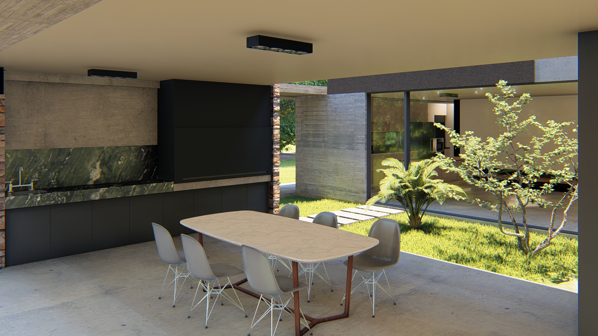 Un patio de transición entre el estar comedor y la galería ubicado hacia el norte, es el protagonista de la casa, generando una desarticulación de ambos ambientes y proporcionando una gran riqueza espacial llena luz, verde y dinamismo.