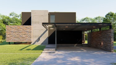 Rodeada por una cortina de verde, la casa fue pensada como un refugio íntimo al que se regresa al final de la jornada a recuperar la paz y el sosiego. La construcción enfatiza una división neta entre el afuera y el adentro con la zona de servicios volcada sobre la fachada. Grandes ventanales integran el paisaje a la vida cotidiana.