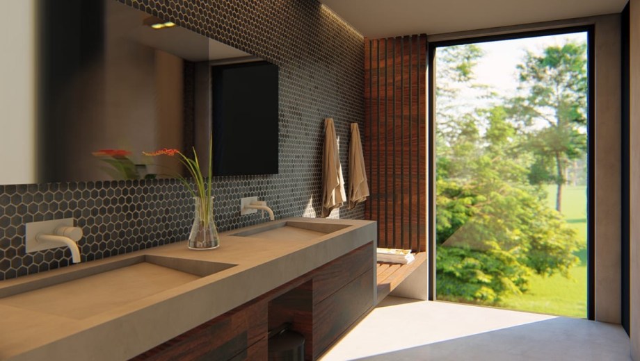 Como sello característico del estudio arquitectónico se utilizaron materiales nobles y puros como la piedra y el hormigón, que se leen en forma equilibrada y estética.