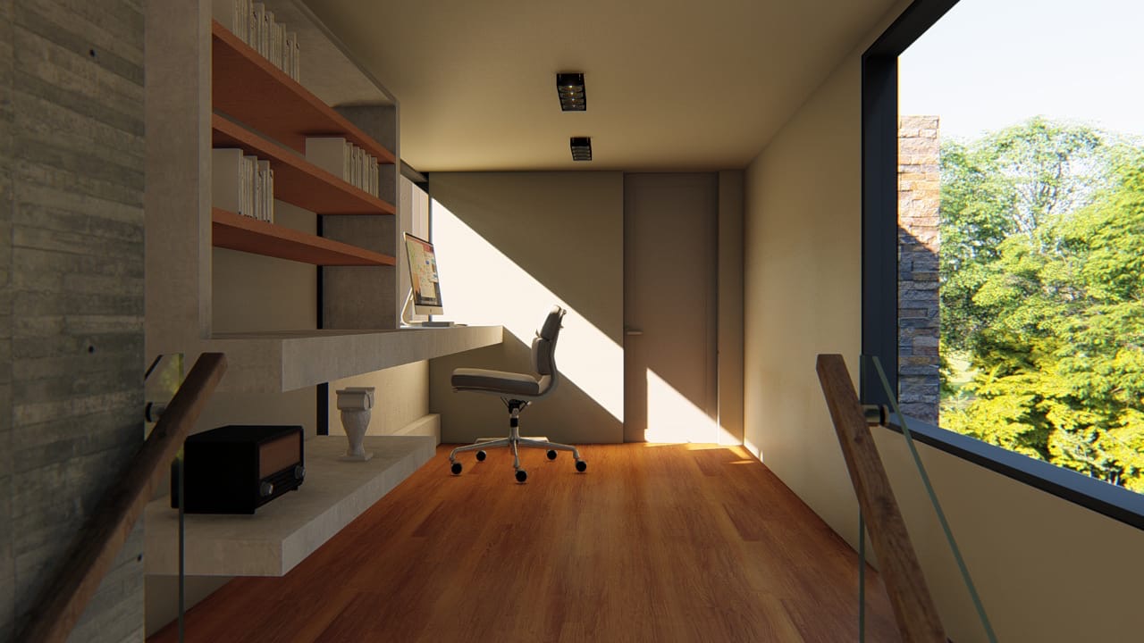 Para esto se realizó un diseño en 2 plantas, ubicando el área social en planta baja, y el área privada en la planta superior.
