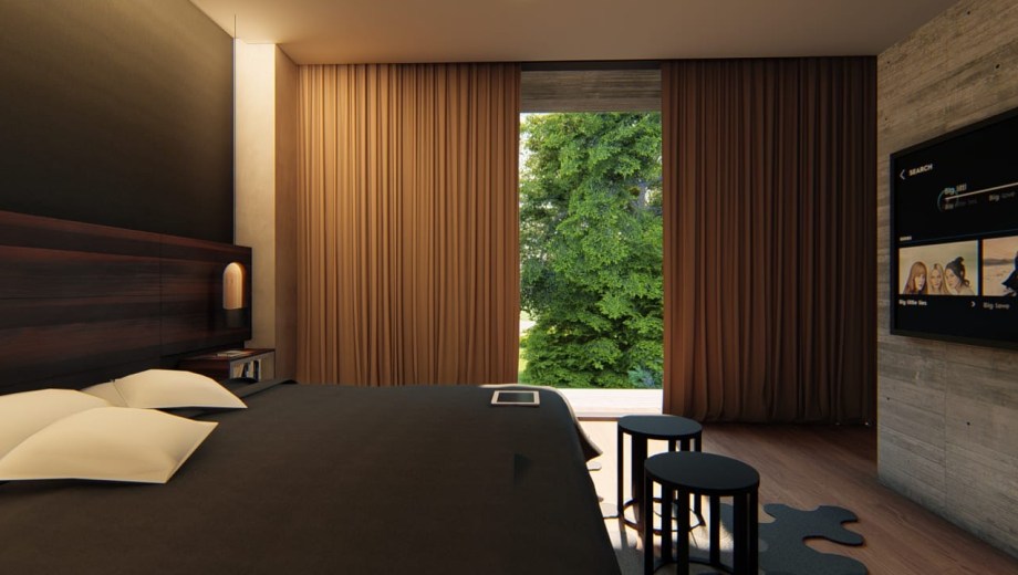 El programa corresponde a una vivienda de 370m² que consta de tres dormitorios: