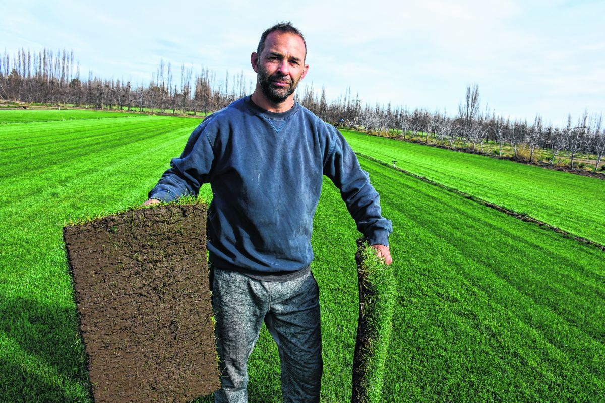 Plantas de manzanos, perales, ciruelas y cerezas fueron quitadas de la tierra. Pocas ganancias, muchos gastos, demasiado sacrificio. Fausto Ferroni y su padre se decidieron un día y comenzaron a diversificar las ocho hectáreas que tienen en la zona sur de Stefenelli (Roca), cambiando todas las plantas por panes de césped.