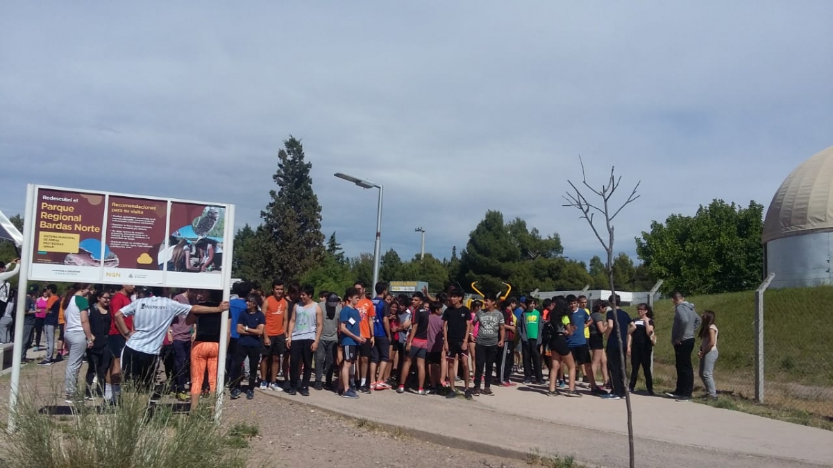 Además de una muestra de sus creaciones, los del ciclo básico fueron animados por los profesores de Educación Física a desafiar el viento y corrieron en el Parque Norte con un punto de partida en inmediaciones del centro astronómico.