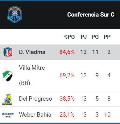 Viedma (récord 11-2) sigue como líder en la Conferencia sur C y este domingo a las 21 será local de Bahía Basket (3-10). Del Progreso (5-8) recibirá a la misma hora a Villa Mitre (9-4).
