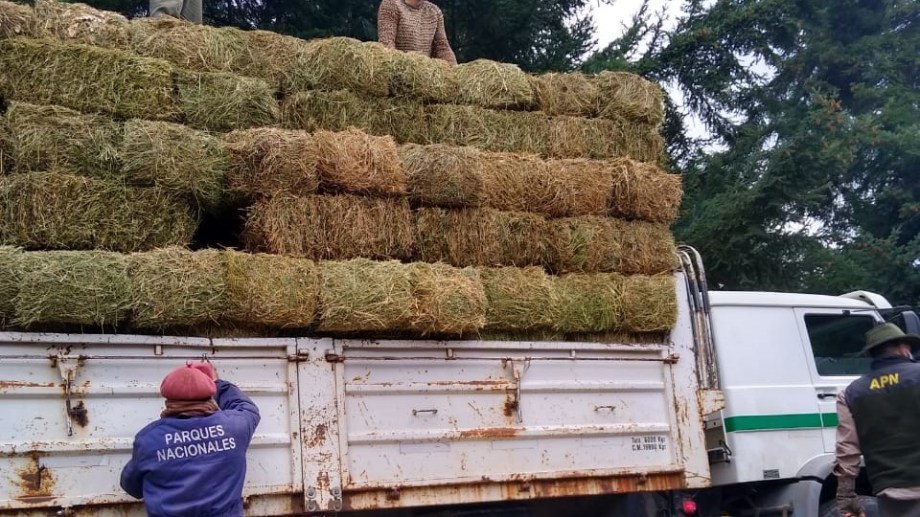 Los integrantes de la Mesa de Asociativismo que coordina el Instituto Nacional de Asociativismo y Economía Social (Inaes) y el parque nacional Nahuel Huapi trasladaron 200 fardos desde Picún Leufú hasta Villa La Angostura este viernes para que los pobladores de la región puedan hacer frente al invierno. Se trata de la segunda entrega.