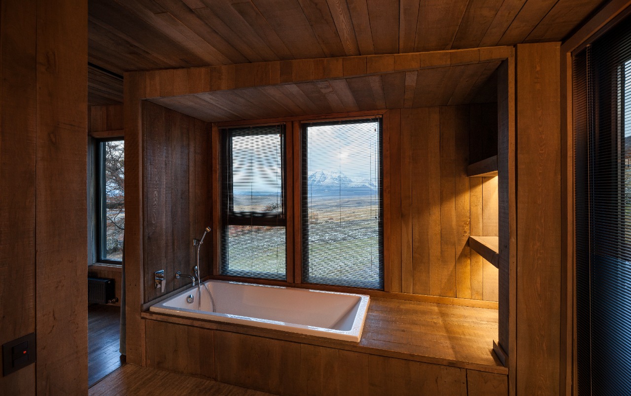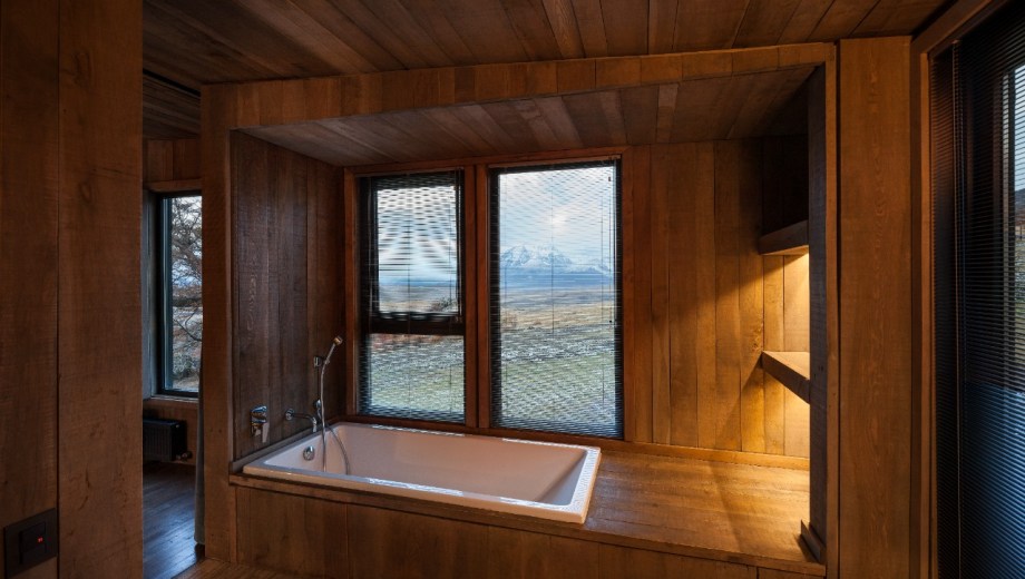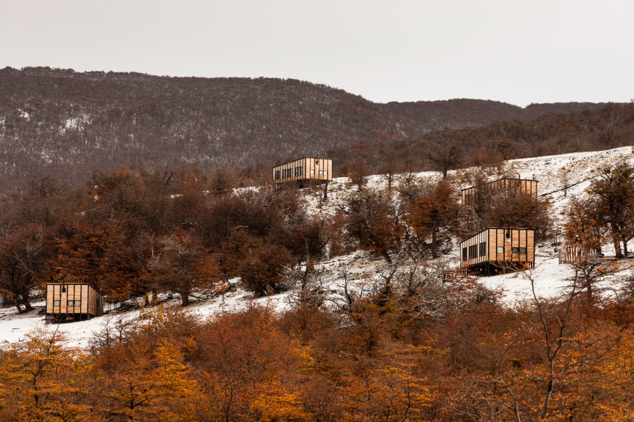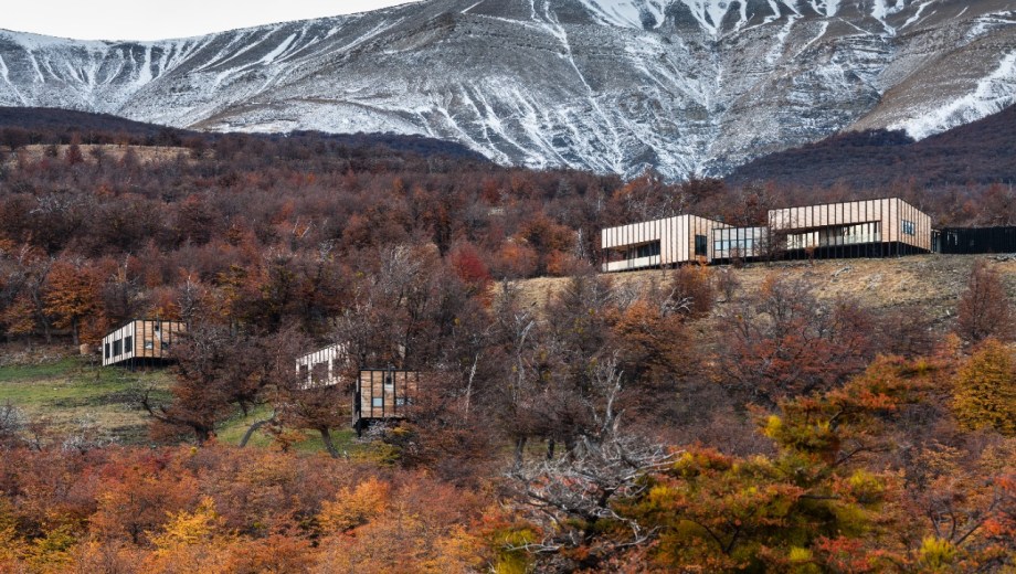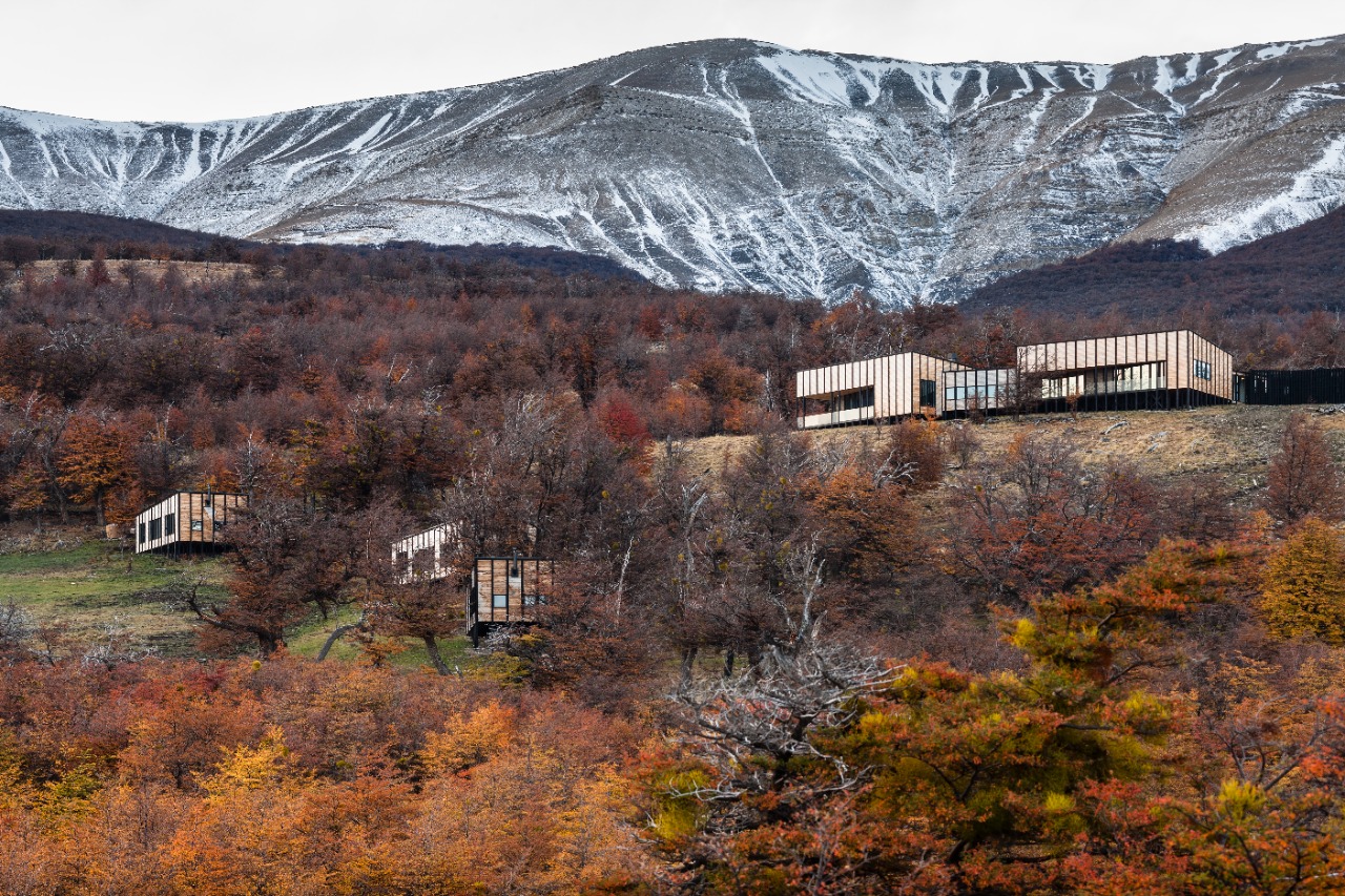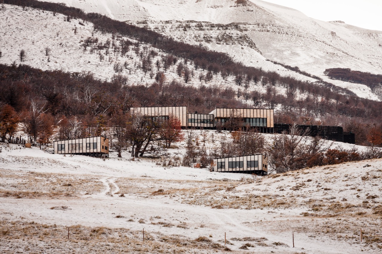 La premisa fue mimetizar la construcción dentro de su entorno, para no imponerse sino para integrarse a él. “Por ello, la serie de unidades aisladas permiten a los huéspedes, al mismo tiempo, tener una experiencia completamente privada. Cada villa goza de vistas despejadas a las torres, al lago Sarmiento o a la estepa patagónica”.