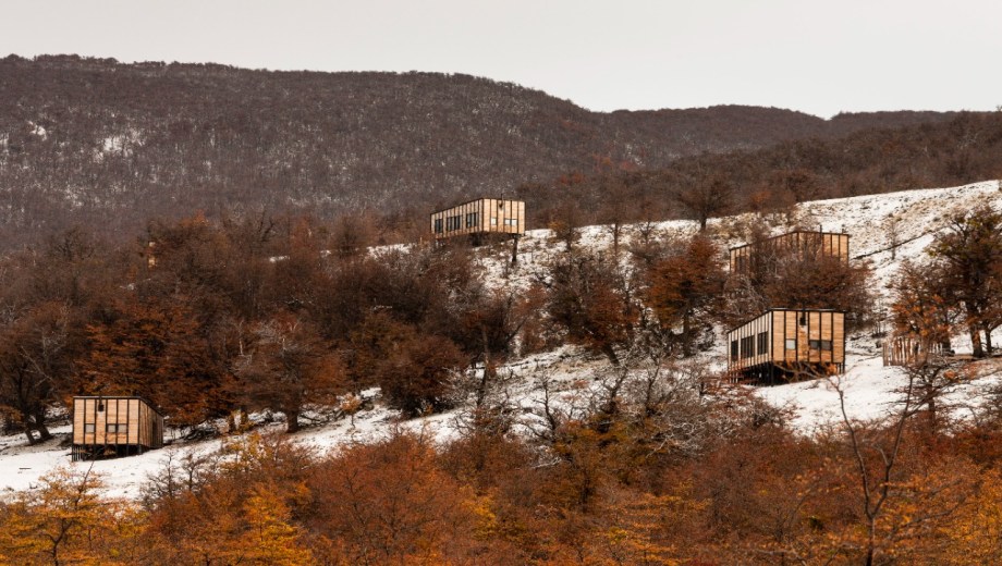La modulación de los pilares frente al bosque y la elección de la madera (lenga), que con el tiempo adquiere un tono platinado, sumado a un emplazamiento preciso para cada unidad, hacen que en ciertas condiciones las construcciones se mezclen con el paisaje, resalta el profesional chileno.