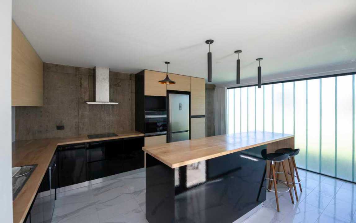 La total claridad de la casa es invadida por los hormigones que se pueden apreciar en los interiores de cocina, garaje y toilette.