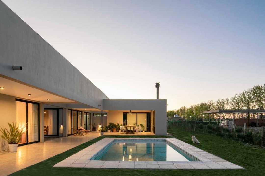 El sello del estudio de arquitectura GUG del Alto Valle se refleja en el sutil manejo de entradas de luz, uso de materiales nobles y la presencia de patios en esta casa de 450 m2 implantada en un lote de 1500 m2 en el barrio La Falda, en Cipolletti.