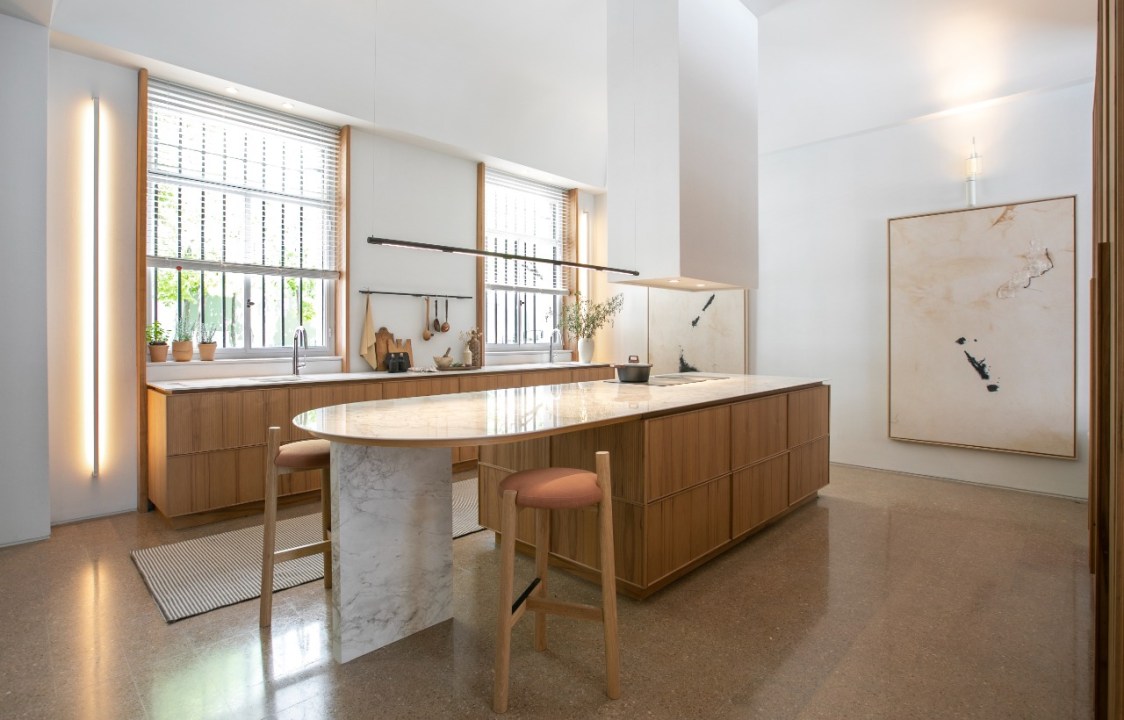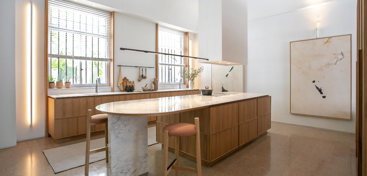 “El desarrollo de este proyecto de cocina-comedor parte del relevamiento histórico de un edificio que presenció uno de los eventos más trágicos de la historia de la ciudad de Buenos Aires. Desde este lugar de respeto por el edificio, su historia y el trabajo de recuperación que se hizo en los años 90, nos acercamos al diseño de un espacio austero en su estética, pero muy actual en su funcionalidad”, comentan los protagonistas de esta obra.