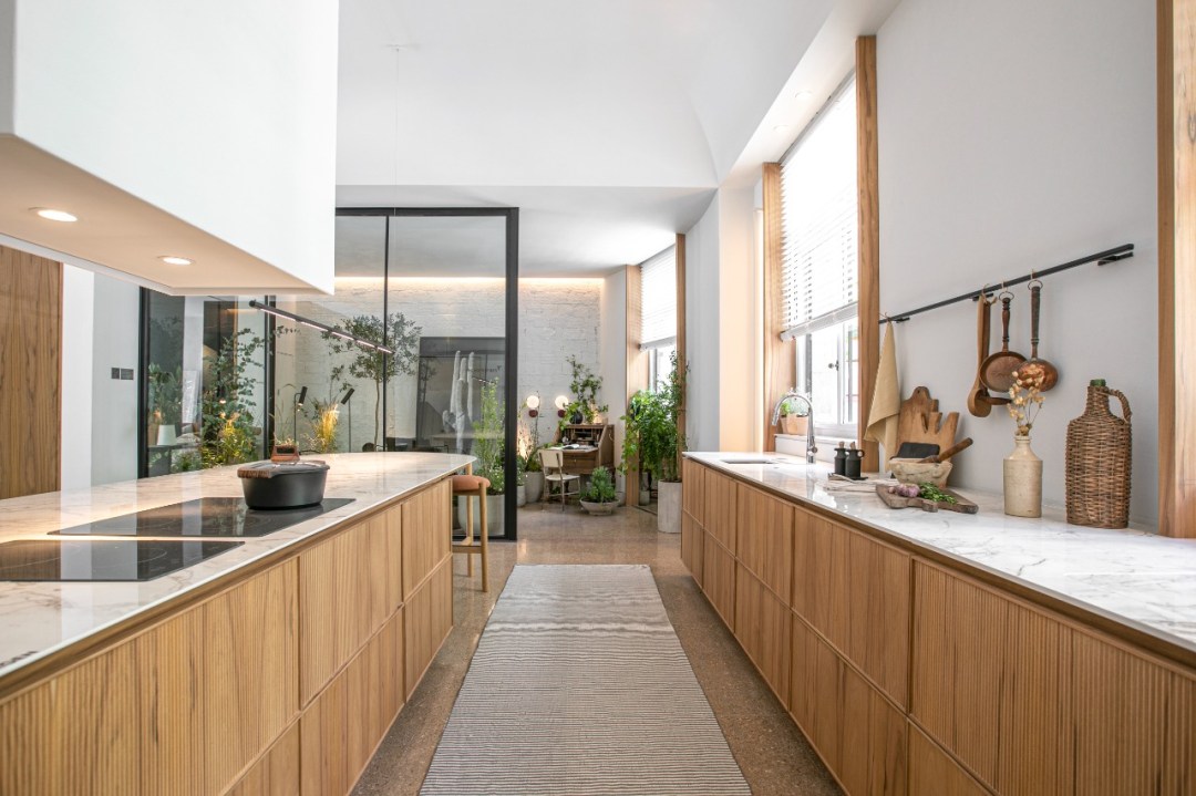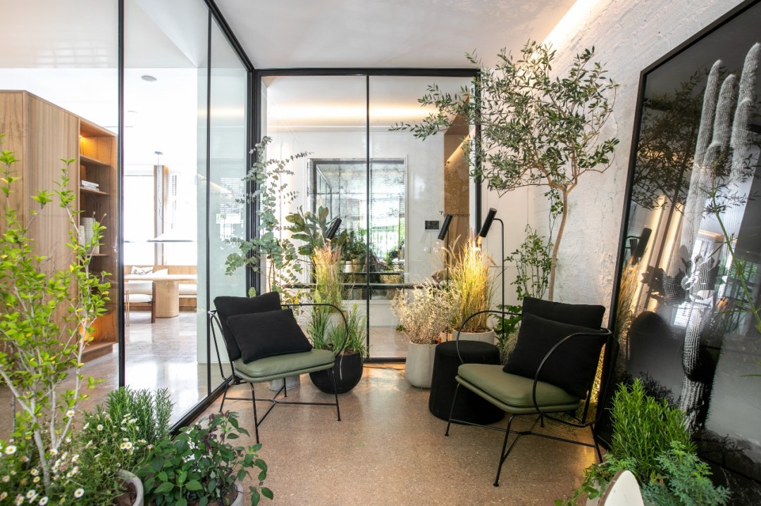 La inclusión de la tecnología y de diversas experiencias sensoriales ayudan a transformar un espacio que carece de terrazas o grandes ventanales en un lugar conectado con la naturaleza y el afuera. La idea de sostenibilidad presente en el uso de iluminación LED, una zona de compostaje, un jardín de invierno donde cultivar hierbas y vegetales y por sobretodo la reutilización y revalorización de lo existente.