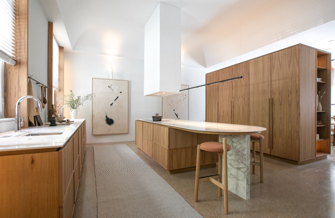 Los arquitectos Daniel Germani, Patricia Mezzadra y Carola Moris proyectaron una cocina-comedor impactante en la última edición de Casa Foa, una expo que estará abierta hasta el 20 de noviembre próximo bajo el concepto “Escenarios futuros”.