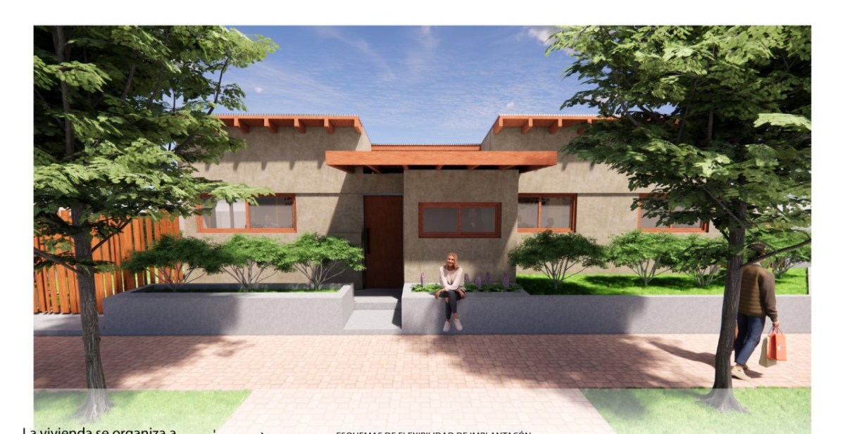 Los tres renders que ilustran esta nota pertenecen a los proyectos de viviendas sustentables que alumnos de arquitectura de la UNRN presentarán en público el próximo jueves 16 de junio (2022) en la sede de esta universidad en Roca.