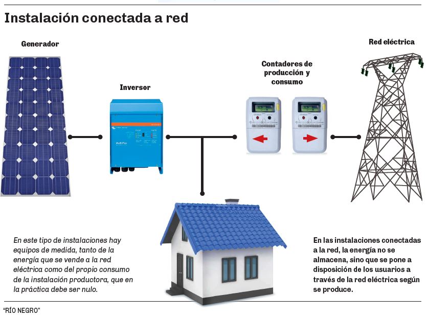 La distribuidora de energía pide un formato de pilar que se debe construir para tal fin, informa sobre la normativa que hay que cumplir y finalmente pone un medidor denominado bidireccional que registra lo que se consume de la red y el excedente que se envía generado a través del sistema solar del usuario. Eso se refleja al final de mes en una factura de compensación.