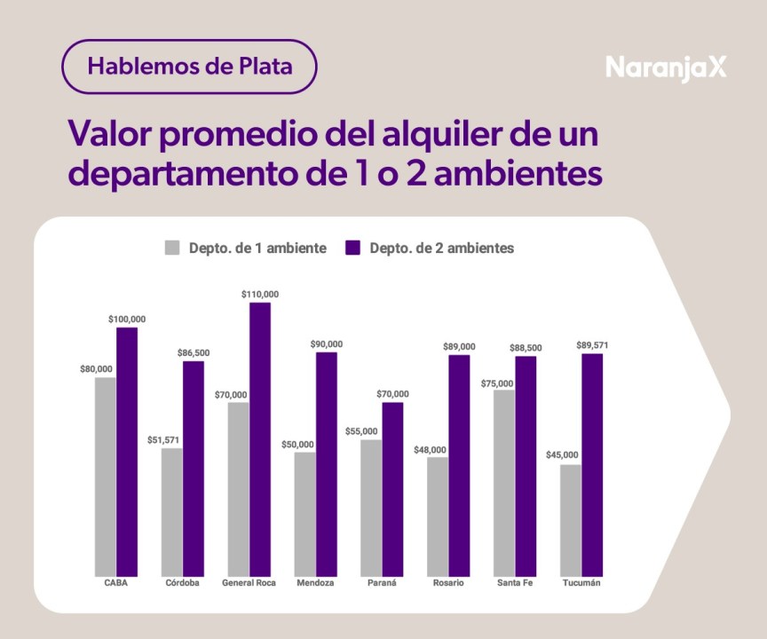 El informe exclusivo de Focus Market para el blog de Naranja X, “Hablemos de Plata”, revela cuánto cuesta alquilar un departamento de uno o dos ambientes en las principales ciudades del país y en comparación con otros países de Latinoamérica.