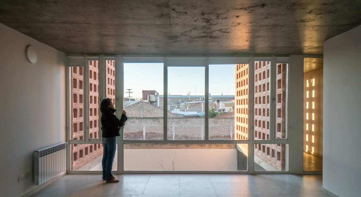 Siguiendo la premisa de «exteriores dentro de interiores», las unidades funcionales están planteadas de tal manera que los espacios están directamente vinculados con patios-balcones, beneficiando la relación entre el exterior y el interior en la mayoría de las áreas.