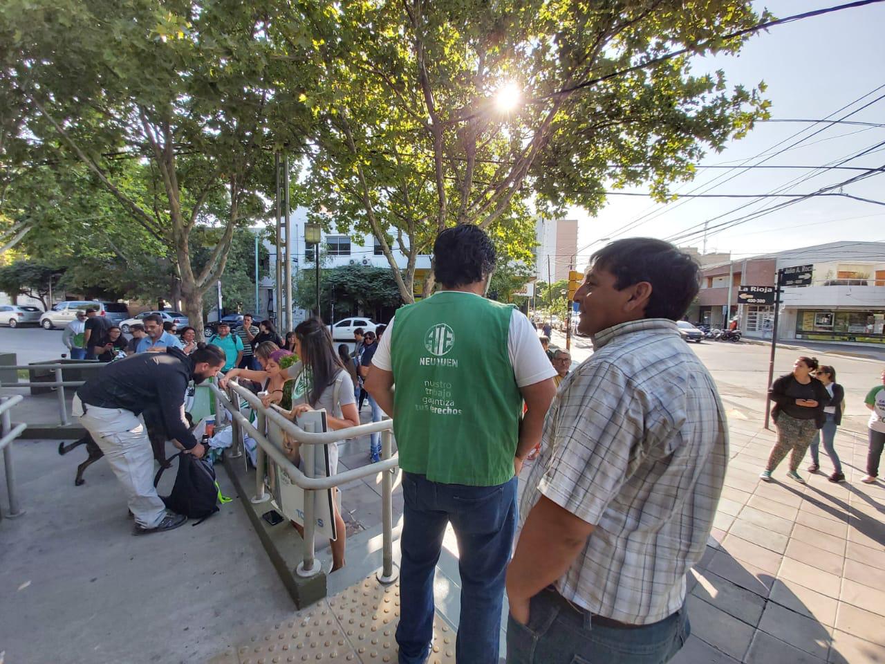 El secretario general de ATE, Carlos Quintriqueo, indicó: “son trabajadores del escalafón general, han trabajado durante muchos años, algunos tienen ocho o nueve años de antigüedad. Para despedirte de un empleo público debería haber un sumario, una causal para el despido, nada de eso sucedió hoy, por eso nos empezamos a manifestar”.