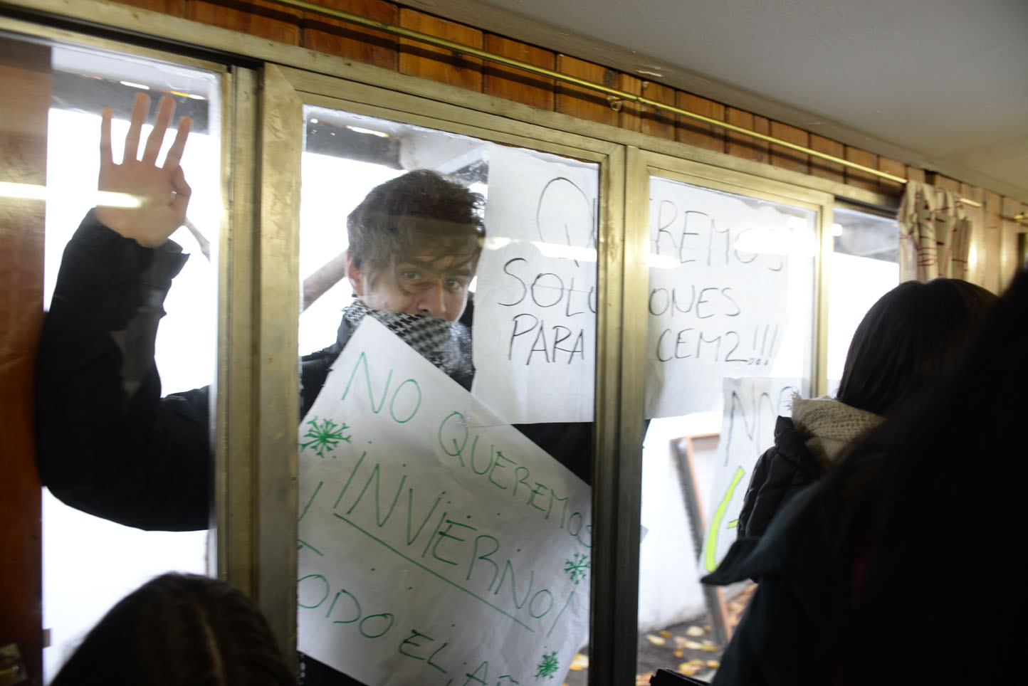 Los estudiantes interceptaron al delegado Alberto Luce que llegó al edificio cerca de las 11:45. Allí le pidieron plazos y compromisos para solucionar los problemas de calefacción de las dos secundarias. El funcionario dijo que el 9 de junio podría estar solucionada la situación de la ESRN 2 donde la mitad de la escuela tiene calefacción con zeppelin y la otra mitad con Split (eléctricos) aunque la calefacción sigue siendo insuficiente.