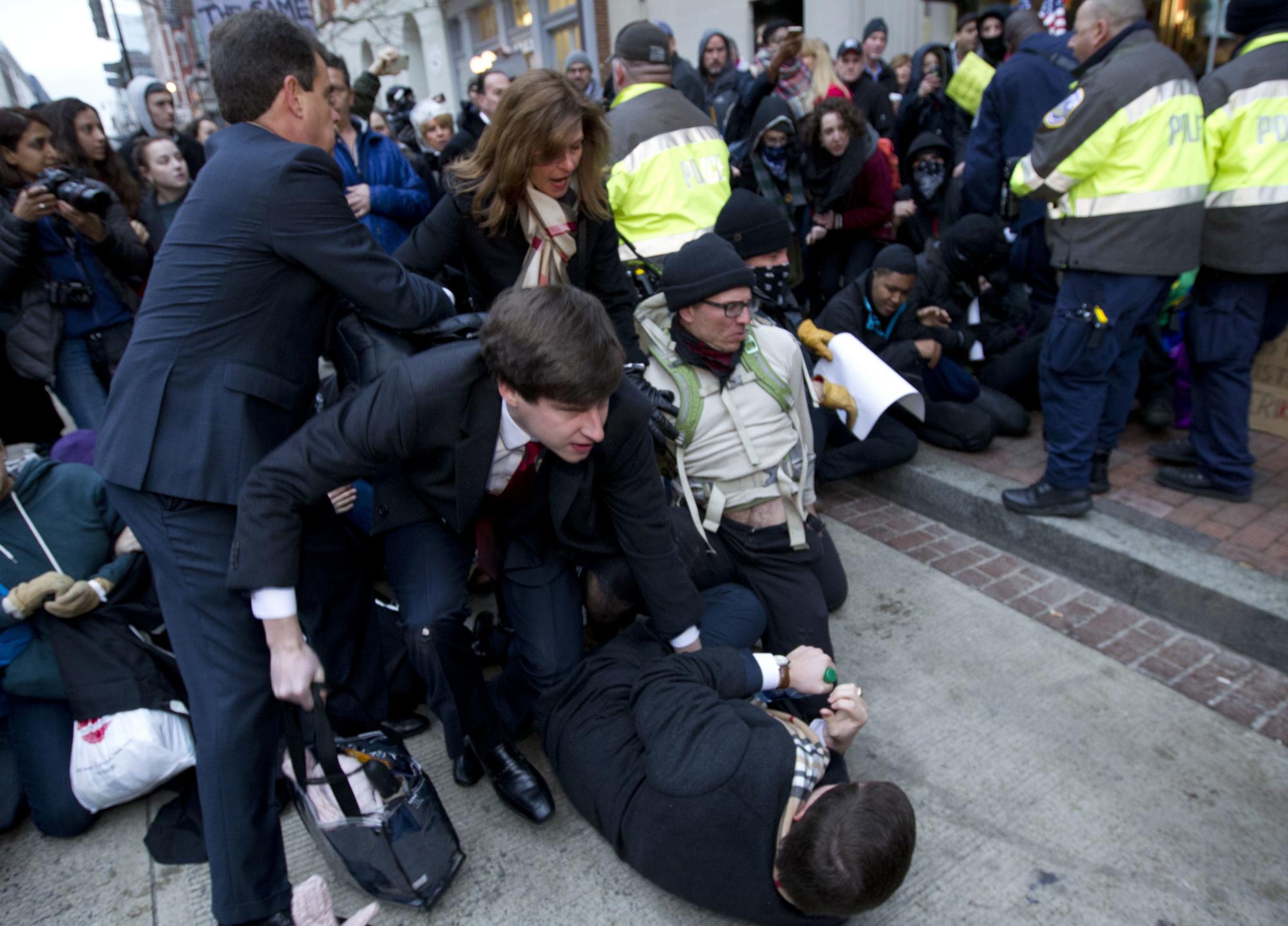 Minutos antes de la jura del nuevo presidente de EE.UU., manifestaciones y corridas en los alrededores del Capitolio, en Washington. Rompen vidrieras.