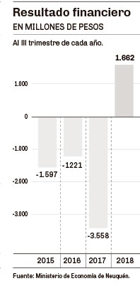 – Resultado económico. Es el ahorro/déficit que se genera en el presupuesto tomando en cuenta los ingresos y los gastos de funcionamiento que tiene el Estado. Es la primera vez en la gestión de Gutiérrez que el presupuesto muestra estos números positivos. Más de 5.500 millones de pesos al cierre del tercer trimestre del año. En 2017 ese indicador mostraba un déficit de más de 2.200 millones. En Río Negro la mejora también es significativa, pero no tanto como en el caso de Neuquén.