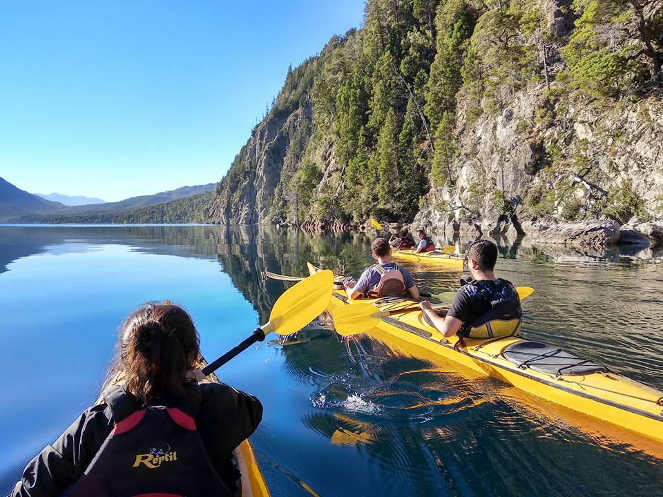 Cada día, alrededor de las 11, un grupo de turistas parte a la aventura desde Puerto Patriada, en el norte de Chubut, a 14 kilómetros de El Hoyo y a 26 de El Bolsón. A puro remo, avanzan en el cristalino lago Epuyén en el corazón de la Comarca Andina, con montañas en el horizonte y truchas abajo.