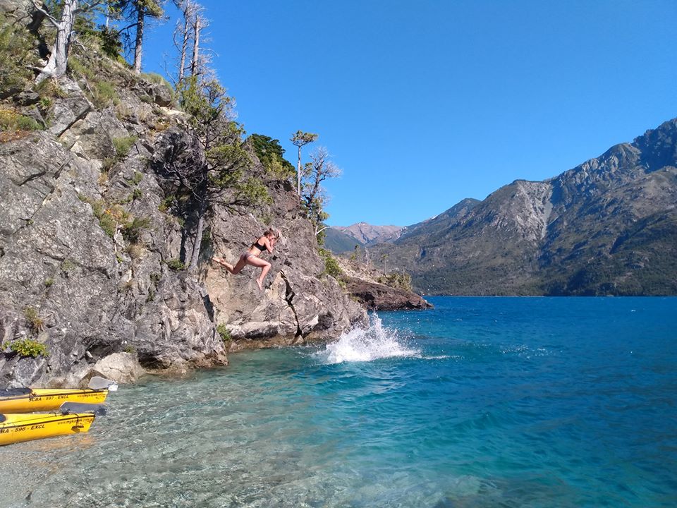 Pero antes, luego de la primera escala, todos vuelven a las embarcaciones para cruzar el lago y remar hasta el próximo destino, otra playita de apenas 100 metros, donde los más valientes se tiran desde las rocas al agua, que aquí sí es de profundidad abrupta.