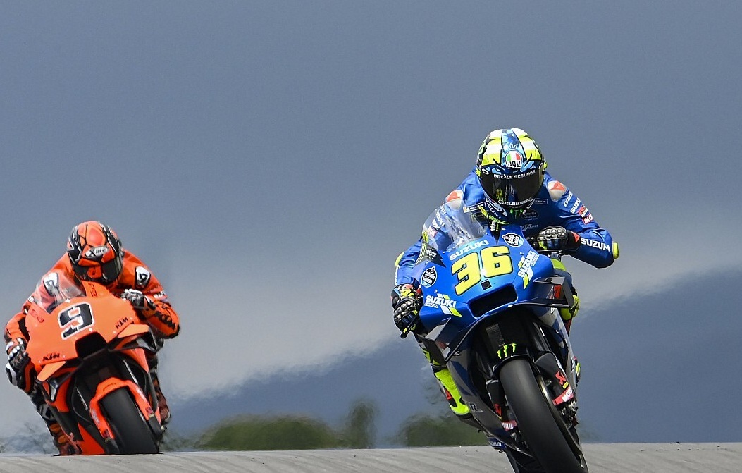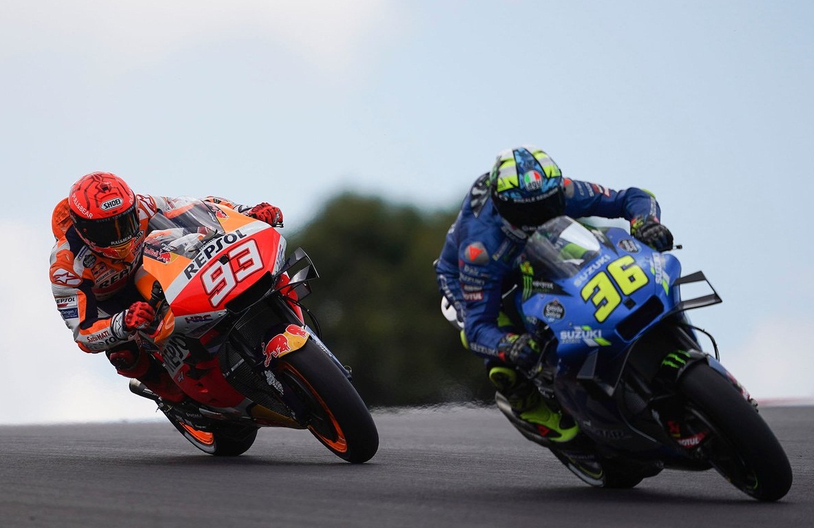 El campeón Joan Mir terminó tercero después de una dura batalla con Francesco Bagnaia y el ganador Fabio Quartararo. Gentileza.