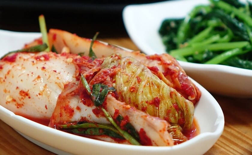 El kimchi es un plato de verduras que se fermenta en una salsa a base de pescados y/o mariscos y en su mayoría ají. Es un acompañamiento que nunca falta en la mesa de la comida coreana ya que brinda frescura y picante.