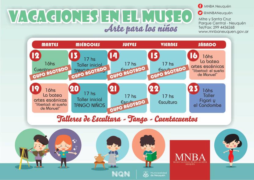 Programa de actividades artísticas gratuitas en el Museo Nacional de Bellas Artes Neuquén (MNBA) para los niños.