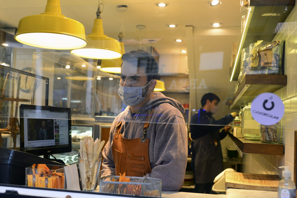 En una cafetería, ubicada a una cuadra del Centro Cívico, tres empleados aguardan algún pedido. “Estamos trabajando muy poco, solo con la gente que retira los pedidos. Estamos tramitando el delivery porque lo cierto es que la gente no sale. No sabemos cómo puede funcionar. Es como un manotazo de ahogado”, reconoció Joel Urtueta, uno de los encargados de Gino Café.