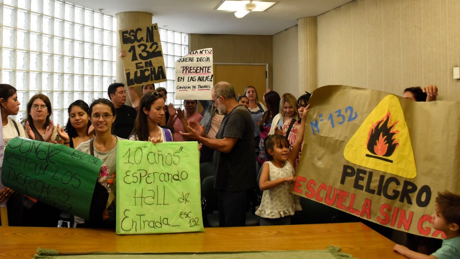 Docentes, alumnos y padres de la escuela 132 del barrio La Sirena se movilizaron al edificio del Consejo Provincial de Educación, en Colón y Belgrano, para reclamar ante los integrantes del cuerpo colegiado por carencias que tienen en el establecimiento.