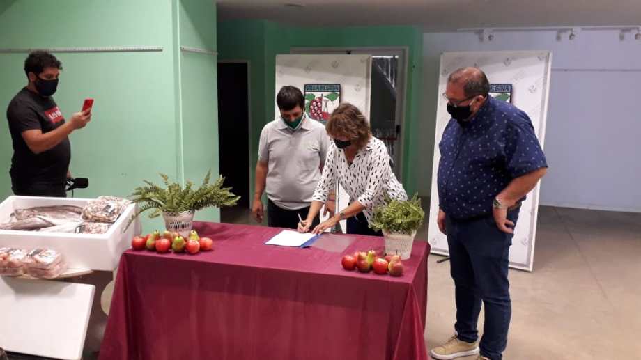 La firma del acuerdo estuvo acompañada por el intendente local, Marcelo Orazi, y legisladores de JSRN del circuito Alto Valle Este.
