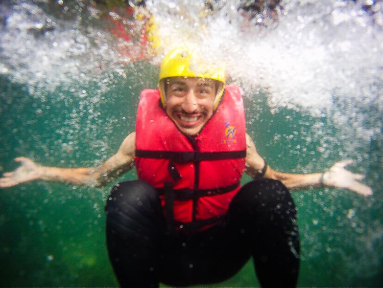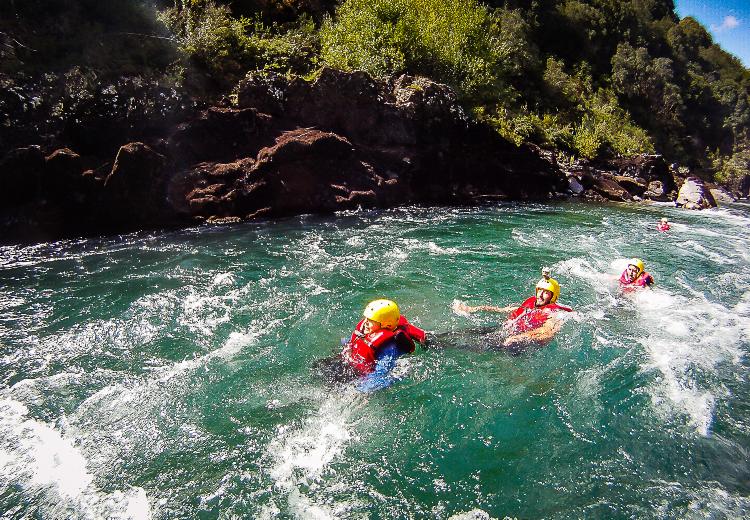 A dejarse llevar por el río, flotando con el chaleco salvavidas.