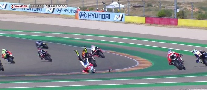 Tati Mercado, con una Ducati del Motocorsa Racing sufrió un aparatoso accidente durante la superpole race y como consecuencia de las lesiones que le ocasionó el golpe, fue declarado no apto para largar la segunda final.