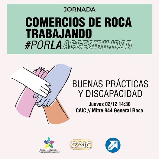 La Cámara de Agricultura Industria y Comercio (CAIC) en conjunto con la Municipalidad de Roca y el Consejo Local para las Personas con Discapacidad organizaron para esta tarde una jornada de "Buenas Prácticas y Discapacidad". La actividad se desarrollará a partir de las 14:30 hs en la sede de CAIC en Roca, ubicado en Mitre 944.