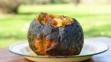 Para la calabaza: horno a 200° C por 45 minutos. Rascas las paredes y hacés un puré con manteca y un toque de leche. Si querés le agregás unos daditos de muzzarella. A esa mezcla que queda en el zapallo le incorporás un chucharón generoso de estofado y a disfruar de tremenda delicia.