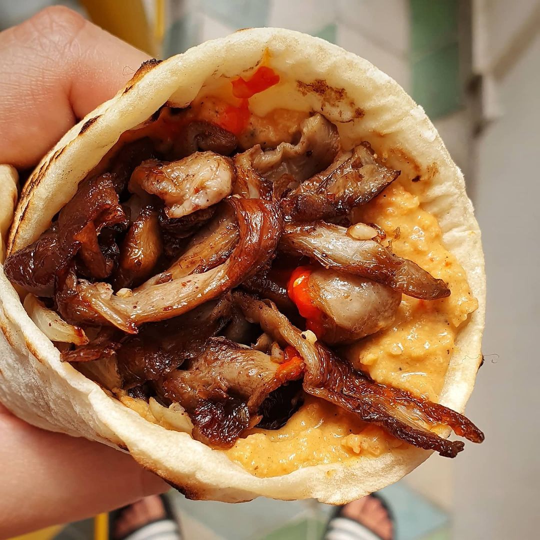 Fajitas o tacos con relleno de hongos en el menú