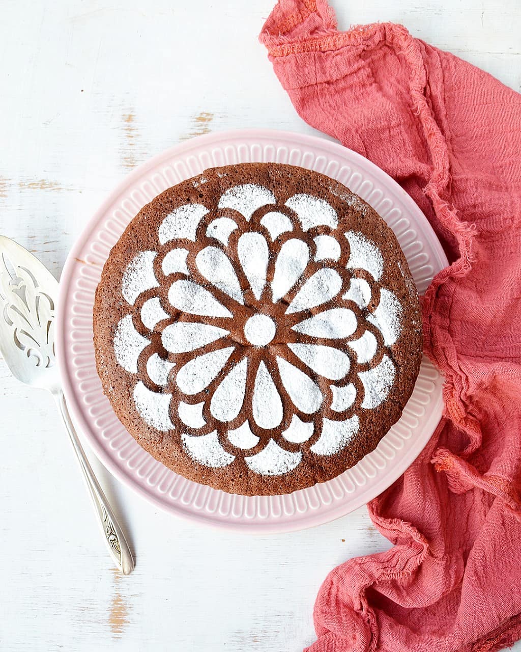 En batidora eléctrica batir a punto letra (entre 6 y 8 minutos, o hasta que el batido se vuelve más claro y espeso, y que al levantar la espátula de la batidora se pueda formar una letra con la preparación que cae) los huevos junto con el azúcar y el extracto. Agregar en dos veces la harina y cacao tamizados.