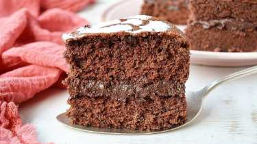 En batidora eléctrica batir a punto letra (entre 6 y 8 minutos, o hasta que el batido se vuelve más claro y espeso, y que al levantar la espátula de la batidora se pueda formar una letra con la preparación que cae) los huevos junto con el azúcar y el extracto. Agregar en dos veces la harina y cacao tamizados.