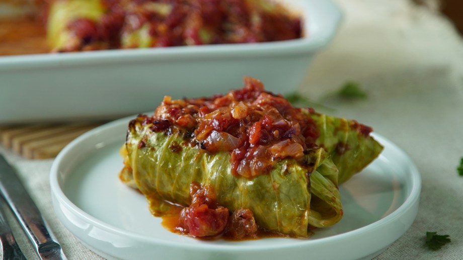 Incorporar la carne, salpimentar, agregar el comino y cocinar hasta que esté hecha. Enfriar bien. Tomar un puñado del relleno y colocarlo sobre el extremo de la penca, enrollarlo cerrando a la vez los bordes y ubicar en la fuente para horno con un poco de aceite de oliva. Cocinar 10 minutos a 180° C. Servir acompañado de una salsa de tomates tibia.