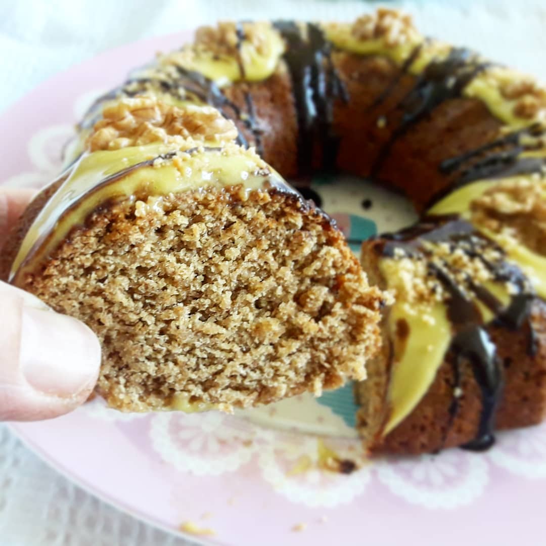 Pintar una budinera con un poquito de aceite y distribuir la mezcla. Llevar a horno precalentado a 170° C por unos 45 minutos (hacé siempre la prueba de introducir un palito una vez transcurrido el tiempo de cocción. Si sale seco, está listo). Dejar entibiar, desmoldar y decorarlo con la crema vegana, frutos secos y todo lo que te guste.