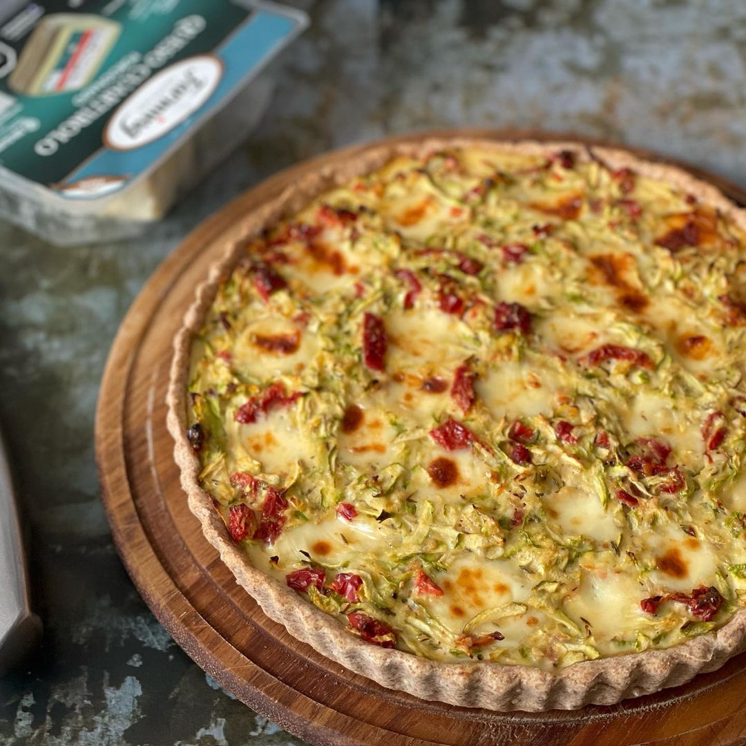 Colocar los tomates en un recipiente y cubrir con agua caliente. Reservar. Rallar los zucchinis, colocar en un paño bien limpio, retorcer para extraer el líquido. Colocar en un bol y añadir los tomates escurridos y picados. En otro recipiente mezclar queso crema, huevos y condimentos. Agregar a los zucchinis, mezclar bien y verter sobre la masa pre cocida. Cortar el queso cuartirolo en cubos y hundirlos en la superficie. Llevar al horno precalentado a 180° y cocinar hasta que el relleno esté firme y apenas dorado.