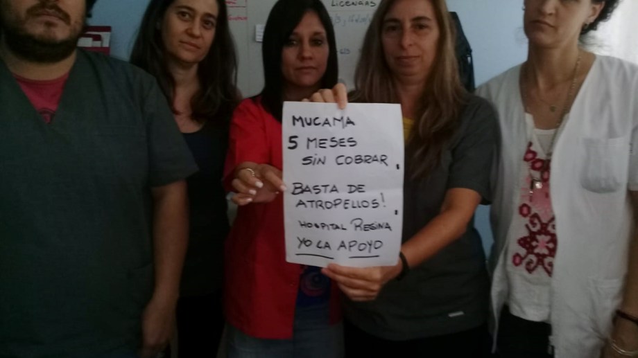 Personal del hospital de Regina se plegó al reclamo que inició en las puertas del centro de salud una trabajadora a la que no le pagan desde hace cinco meses.