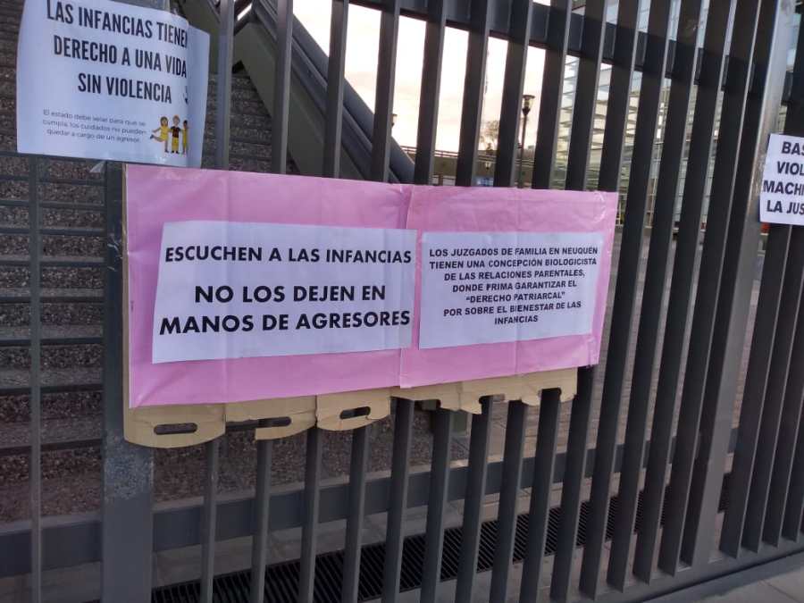 Las voluntarias de la Campaña Nacional por la Emergencia en Violencia de Género volvieron a protestar en las puertas de la Ciudad Judicial de Neuquén. Esta vez fue para exigir que no se criminalice a las "madres protectoras" y piden que se resguarden los derechos de las infancias, sin forzar el vínculo con padres violentos.