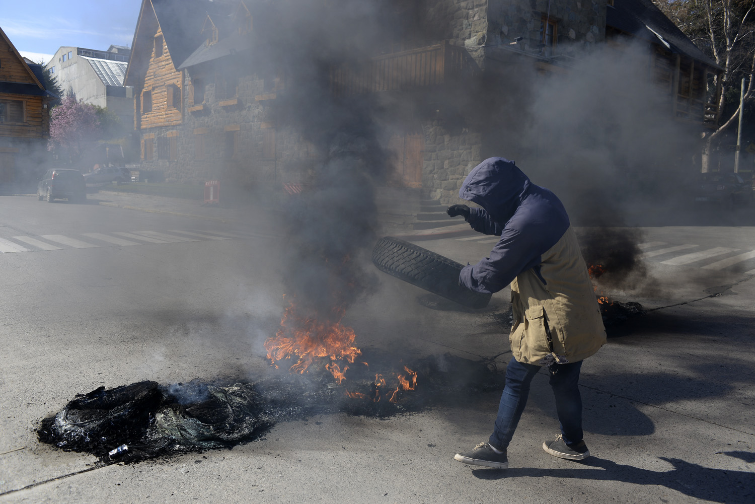 Un grupo de personas llevó a cabo una quema de neumáticos en el Centro Cívico esta mañana. Los manifestantes llevaban carteles que decían: «Por un techo digno» «No al desalojo».