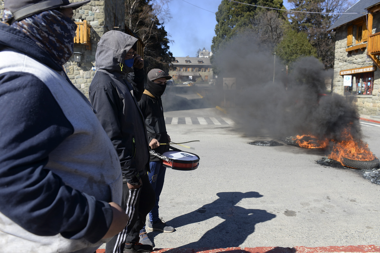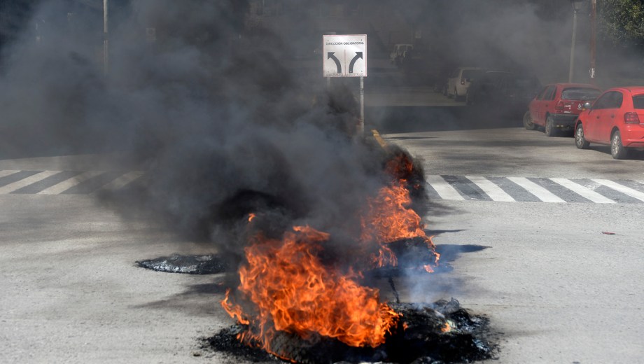 Un grupo de personas llevó a cabo una quema de neumáticos en el Centro Cívico esta mañana. Los manifestantes llevaban carteles que decían: "Por un techo digno" "No al desalojo".