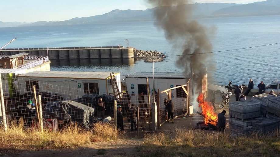 La protesta se inició esta mañana con la quema de pallets y gomas junto al obrador de la empresa ubicado en la costanera del lago Nahuel Huapi, a la altura de la calle Villegas.