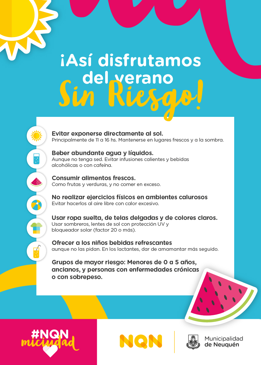 Compartimos las indicaciones sencillas y fáciles de recordar que difundió el municipio de Neuquén ante el pronóstico de altas temperaturas que se esperan en la región.