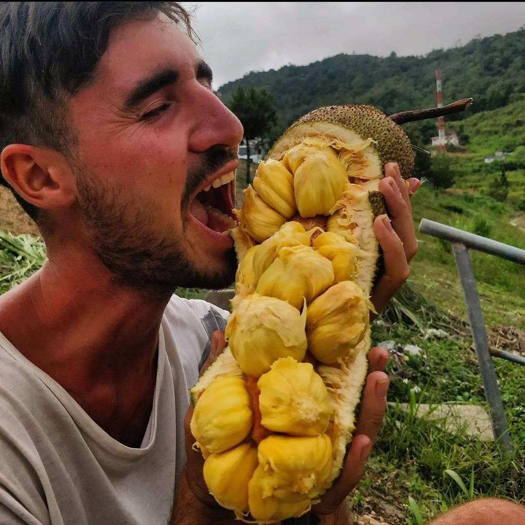 Pablo hace un repaso por cada una de las reinas del paladar. La más dulce es, sin dudas, el chempedak, dice que es como si fuera miel pura. La más grande que vio es la jackfruit, llegando a pesar hasta 40 kg cada una, y jura que es deliciosa. La más extraña es el durian, una fruta polémica por su fuerte aroma, pero sostiene que los que se animan a probarla, se encuentran con un manjar sublime, “una textura cremosa como un dulce de leche, con sabor a chocolate blanco y un toque de aroma a café, de otro planeta”, se saborea Pablo.